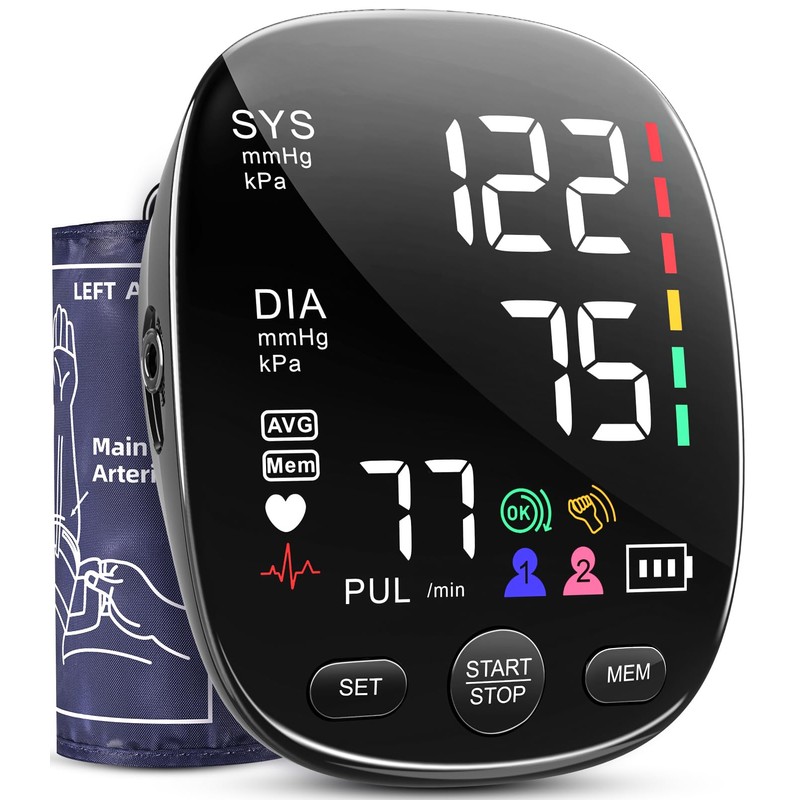 - Easy-to-use Blood Pressure Machine: The blood pressure monitor for home use features a one-button operation design and you can get the blood pressure and heart rate readings by simply pressing the Start/Stop button. It has large buttons and is easy to use and set up, so inexperienced or elderly users need not have concerns about the operation. It can store a total of 240 readings with timestamps for two users, making it easy to take control of blood pressure trends at home