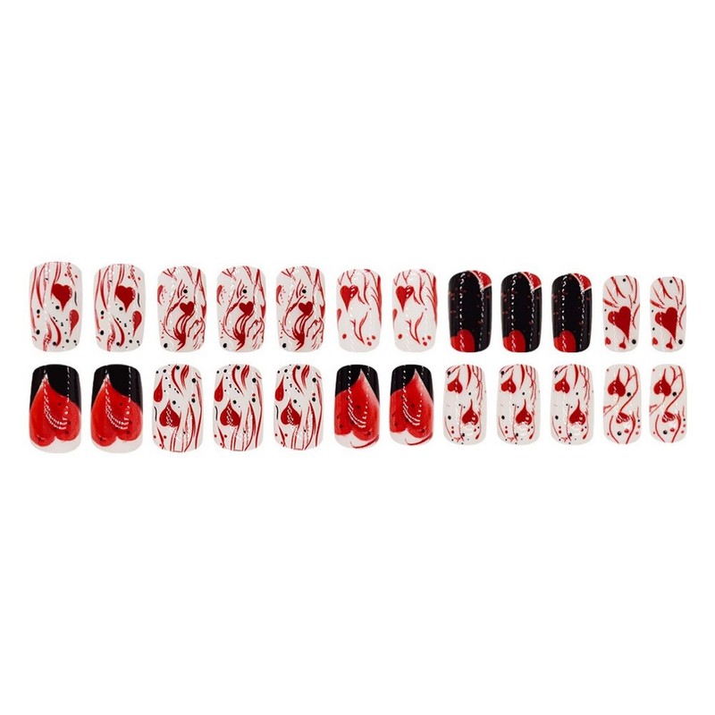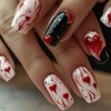 Blood Red Love Heart Valentine's Day Press on Nails Medium Square Fake Nails Designs Black White Glossy False Nails Full Cover Acrylic Nails Valentines Stick on Nails for Women DIY Manicure 24 Pcs