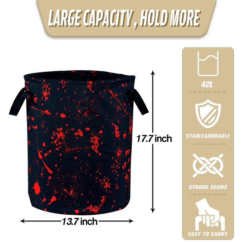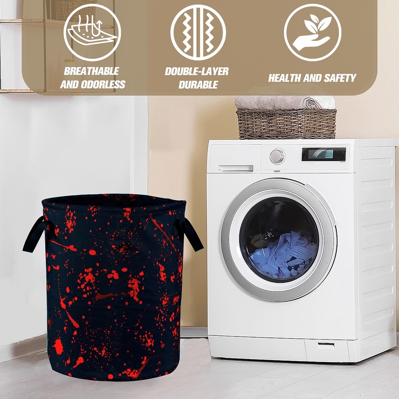 Blood Splattered Laundry Basket Blood Pattern Foldable Oxford Cloth Funny Tote Bag Laundry Hamper Clothes Storage Bucket Organizer For Bathroom/Laundry Storage/Bedroom 17.7x13.7 Inch