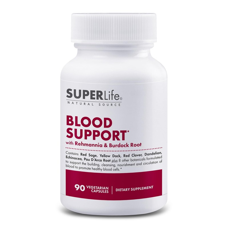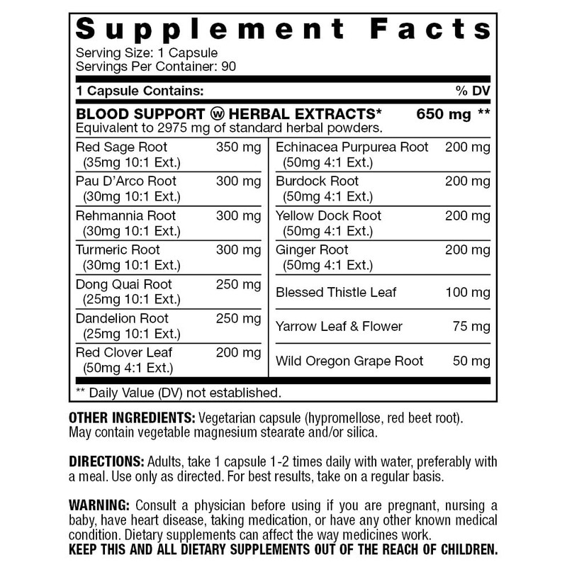 Blood Support - with Rehmannia, Dandelion, Red Clover, Burdock Yellow Dock, Echinacea & Pau D'Arco | Promotes Building, Cleansing, Nourishment & Circulation of Blood | Supplement - 90 Capsules