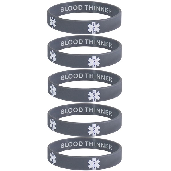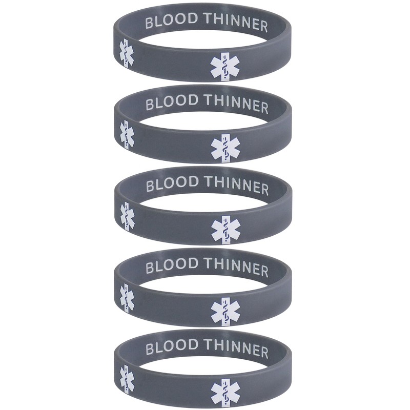 - Purchase our "BLOOD THINNER" Medical Alert ID Privacy Enhanced Silicone Bracelets 5 Pack today and take the first step towards a safer tomorrow!