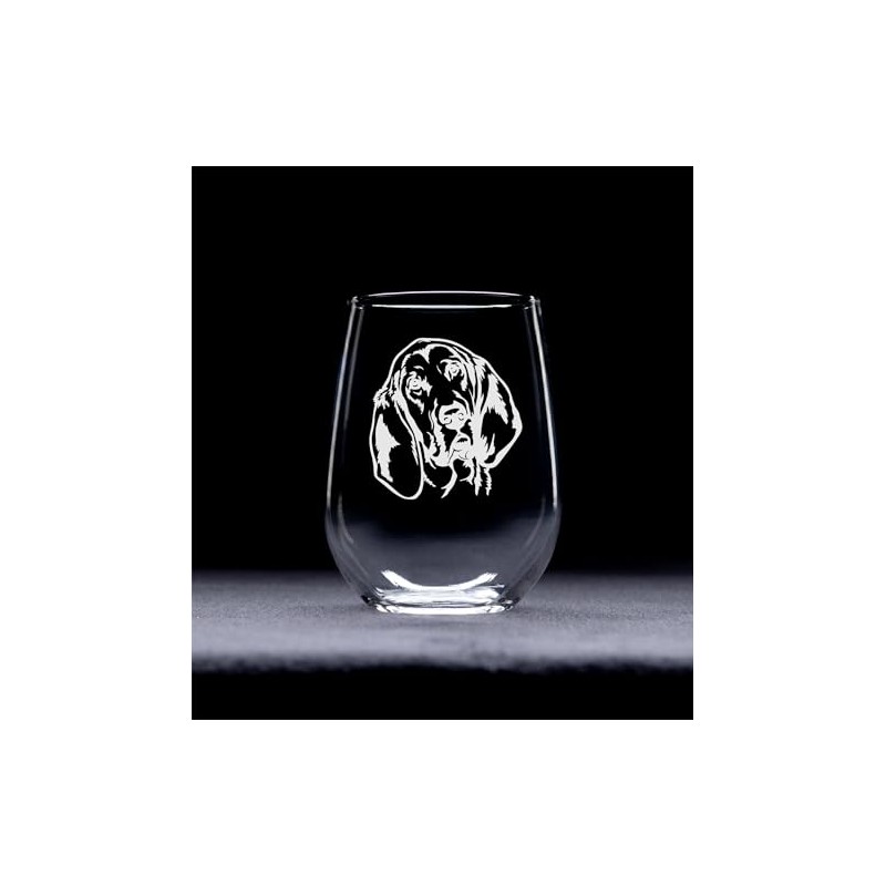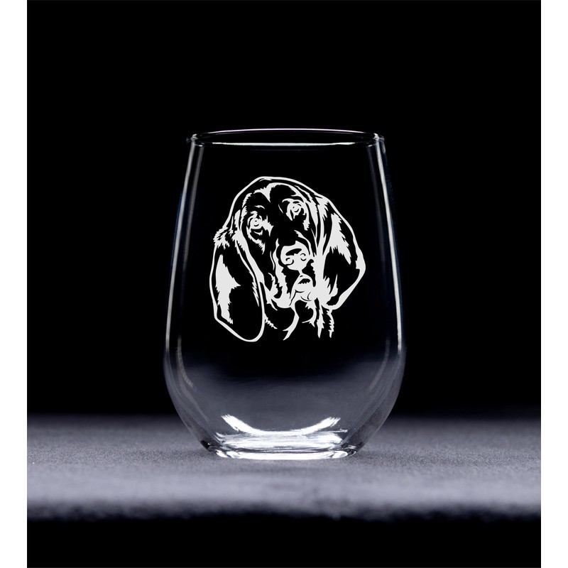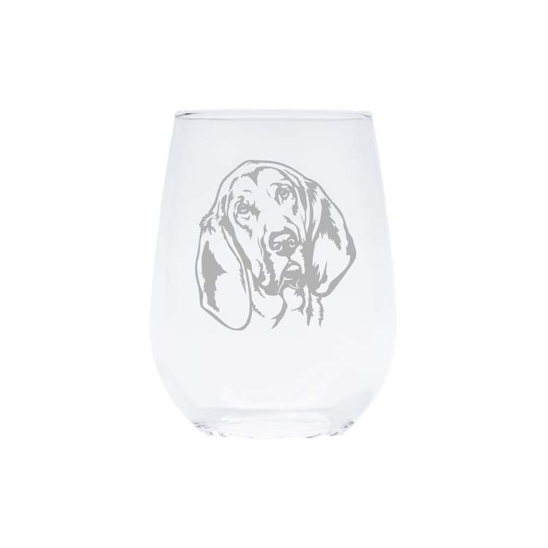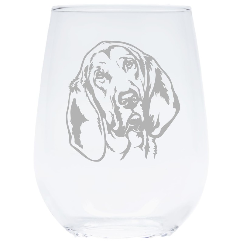 Bloodhound (B2) themed dog stemless wine glass, 17 oz.