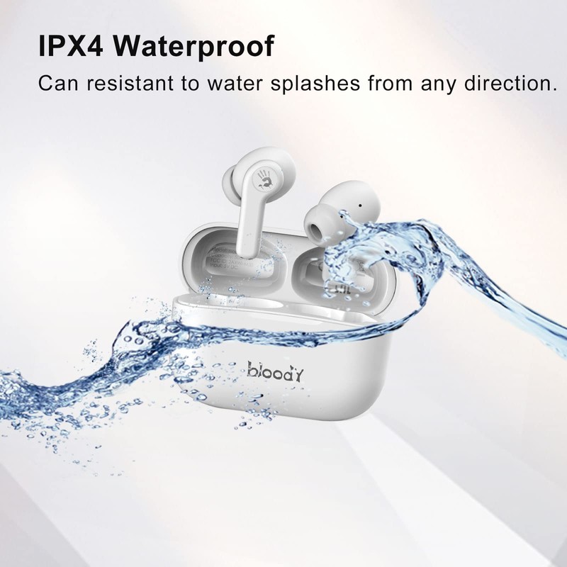 - Water Resistant Design, Exercise Freely - IPX4 rate design can resists splashing water from all directions. No need to worry about sweat entering the earbuds when exercising. Move right now with Bloody true wireless earbuds.