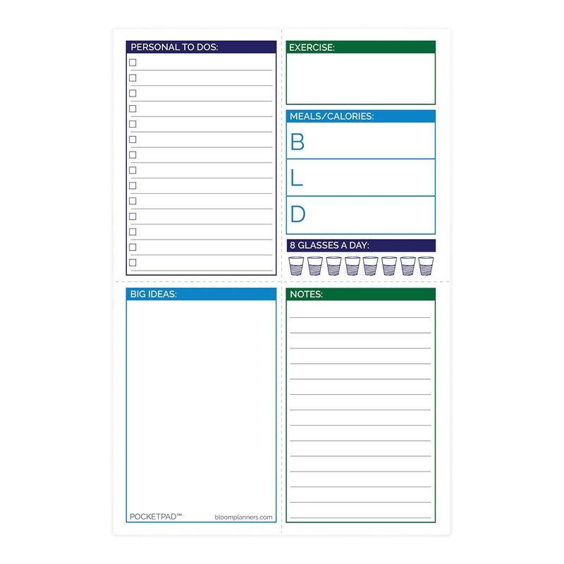 bloom daily planners Pocket Pad - Gender Neutral Double Sided Tear Off Daily Planning Pad - 6" x 9"