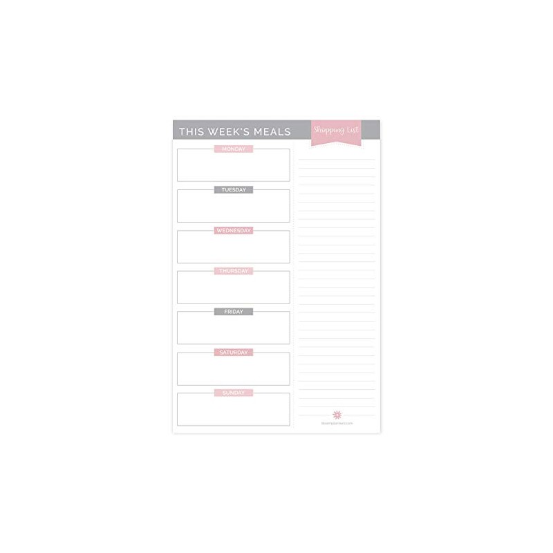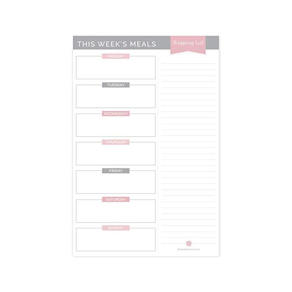 bloom daily planners Weekly Meal Planning Pad - Magnetic Hanging Refrigerator Menu Planner with Tear-Off Sheets & Perforated Grocery Shopping Lists - 6” x 9” (Grey & Pink)