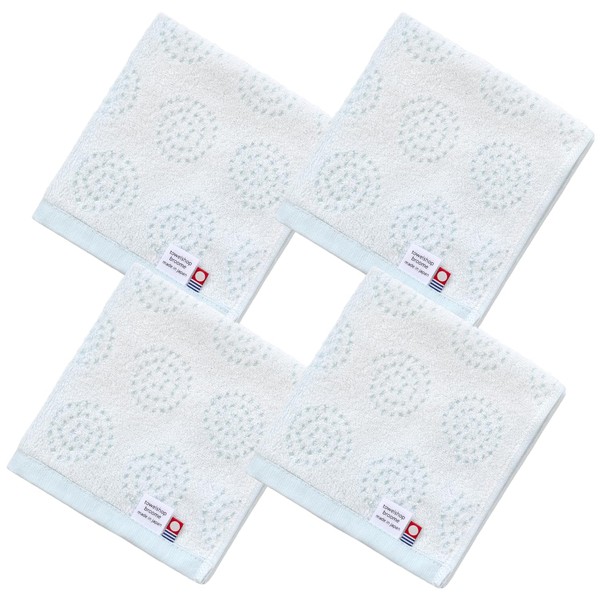 Bloom Imabari Towel Certified Hand Towel, Set of 4, SION Towel Handkerchief, 13.4 x 13.8 inches (34 x 35 cm), Water Absorbent, Large, Design, Made in Japan, 100% Cotton (Uzuzu)