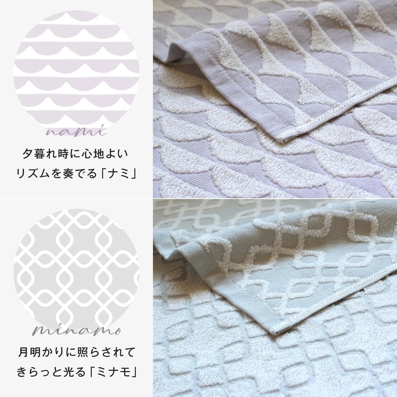 - 4 Different Designs: The handle of the towel represents a large ocean, and includes all 4 patterns of Minamo, Nami, Shibuki, and Uz. By weaving the jacquard fabric, the appearance of the front and back side is different