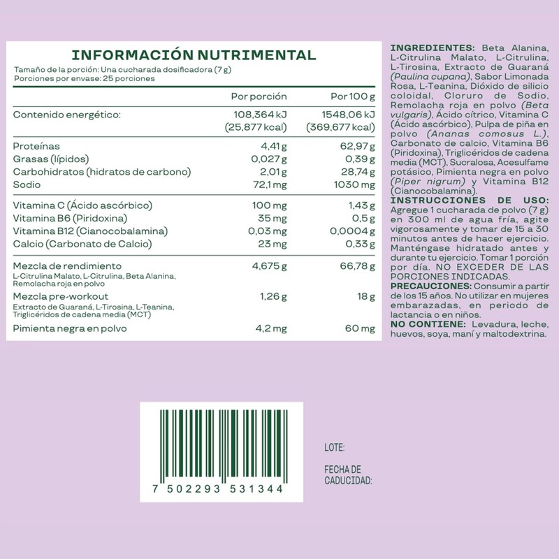 • Beta Alanina reduce la fatiga muscular para proporcionar energía limpia y maximiza el rendimiento total del cuerpo. Sin crash, sin nerviosismo, sin ansiedad.