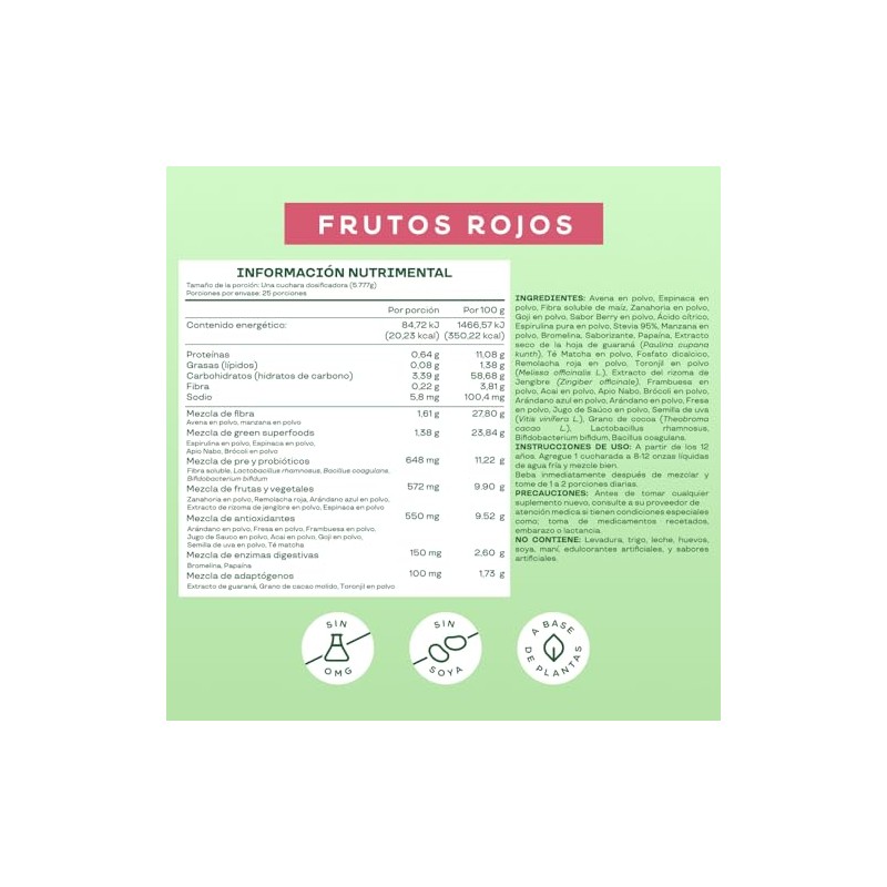 - Delicioso Sabor: Hecho con ingredientes que tu cuerpo necesita, nuestros Greens son hechos sin lácteos, sin gluten, sin azúcar, sin soya, compatible con la dieta keto, y vegano. Tiene un sabor suave y refrescante, como un jugo verde ligero y afrutado. Disfrútalo con agua, en un batido, o mezclado en tu bebida favorita.