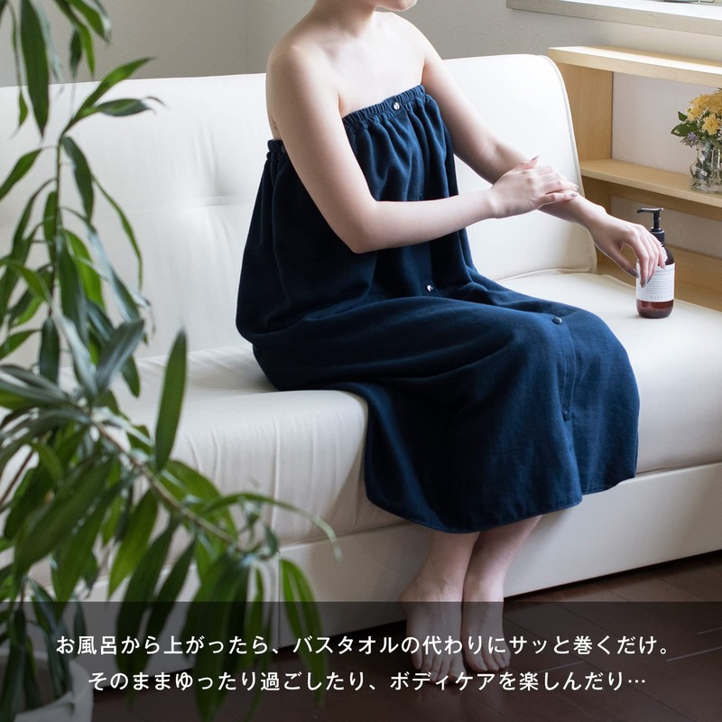 Bloom Speed Dry Wrap Towel, For Adults, 85 x 130, Gauze Material, Change Towel, Wrap Towel, Esthetic Gown, Pool Towel, Bathing, Water Absorbent, Quick Drying, 100% Cotton, Made in Japan (Navy)