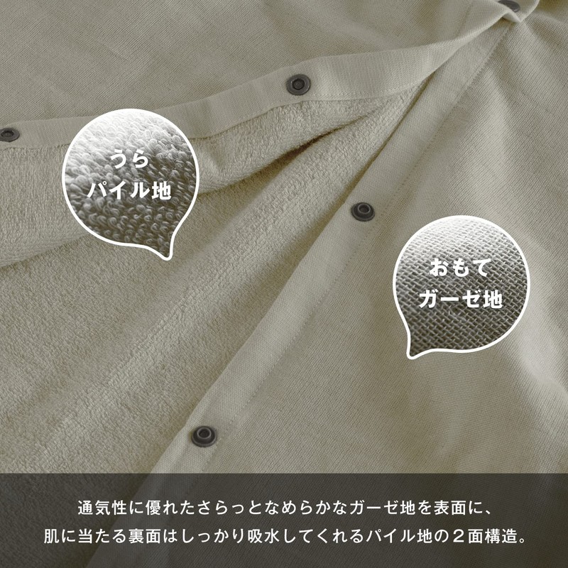 The surface is soft gauze fabric, and the back side is pile fabric to absorb moisture. Dries faster than regular wrap towels and dries faster for hygienic. It does not add bulk, so it is convenient to carry. Great for relaxing, as well as for a variety of occasions such as esthetics and gyms. Made in Senshu, Osaka, Japan.