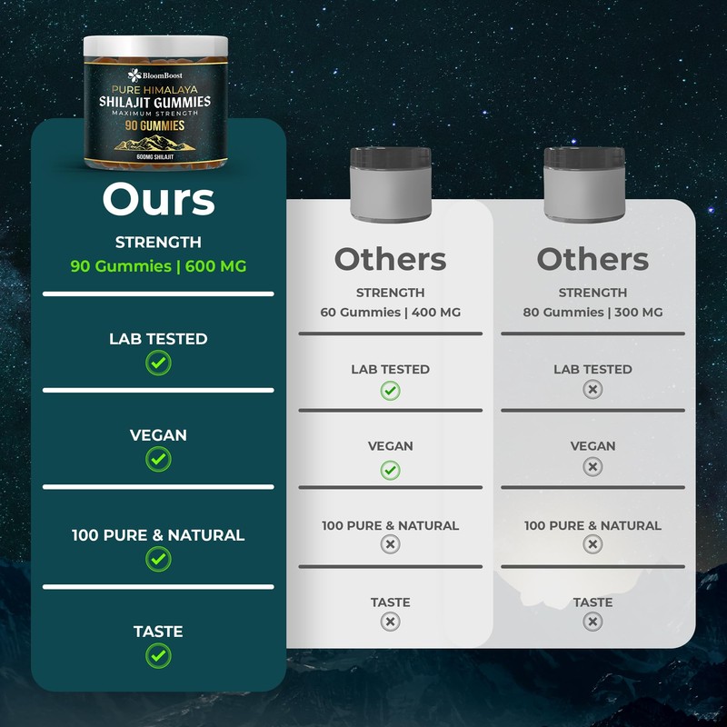 BloomBoost Shilajit Gummies - Sugar-Free Himalayan Organic Supplement | 600mg Shilajit, 90 Gummies for Energy & Wellness