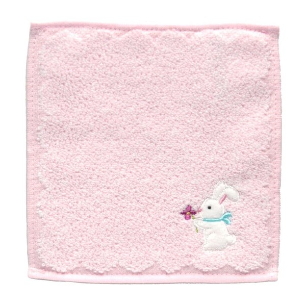Bloomie's 000541-0034-01 Bunny Small Towel (Pink), 100% Cotton, Children's Hand Towel, Mini Towel, Animal, Flower, Rabbit Motif, Approx. 5.9 inches (15 cm)