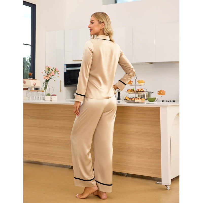 - Soft Silk Pajama: The satin pajama set for women are made of soft, skin-loving fabric. This breathable material delivers cozy without bulk—Ideal lounge sets for women in fall or winter.