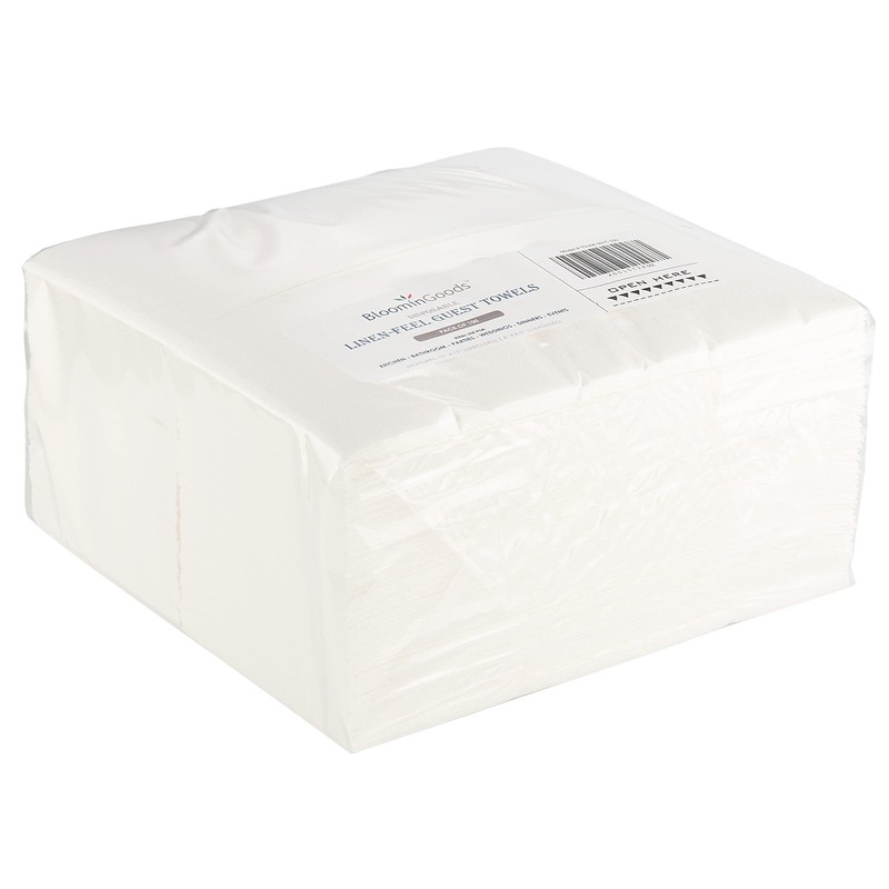 BloominGoods 100-Pack BloominGoods Disposable Bathroom Napkins | Linen-Feel Guest Towels | Cloth-Like Hand Tissue Paper, White, 12" x 17" (Made In USA)