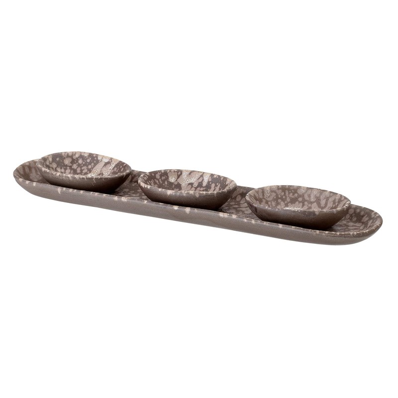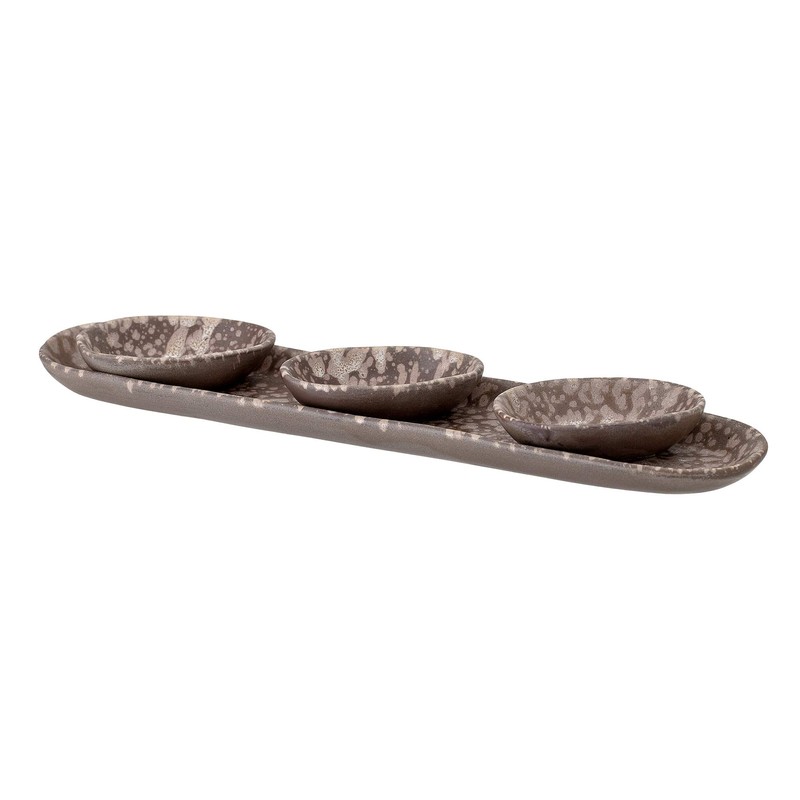 Bloomingville - Thea Tapas Set - Brown - Stoneware - Tray: (L x H x D) 35 x 1.5 x 8.5 cm / Bowls: (L x H x D) 9 x 2 x 6.5 cm - Set of 4