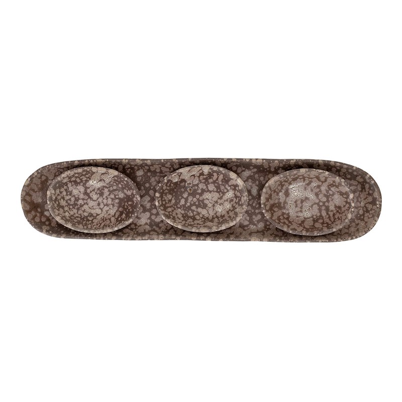 Bloomingville - Thea Tapas Set - Brown - Stoneware - Tray: (L x H x D) 35 x 1...