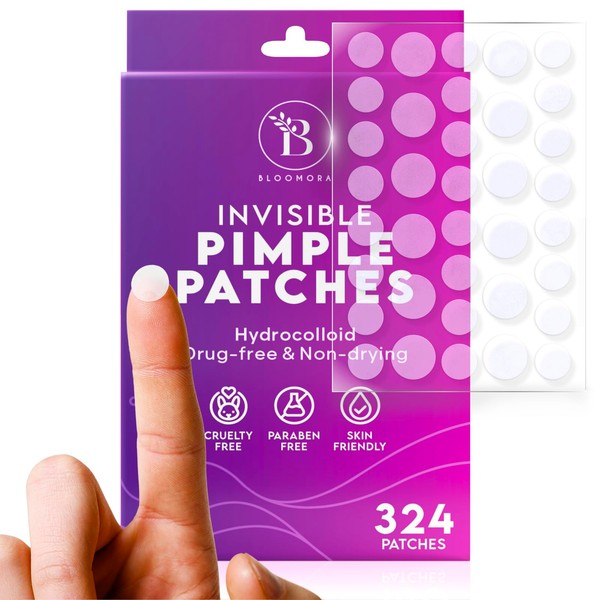 BLOOMORA Invisible Pimple Patches (324 Count), Pimple Patch for Face Care & Body, Spot Patches for Acne Treatment, Hydrocolloid Patches for Blemishes, Acne Patch Spot Remover (S/L)