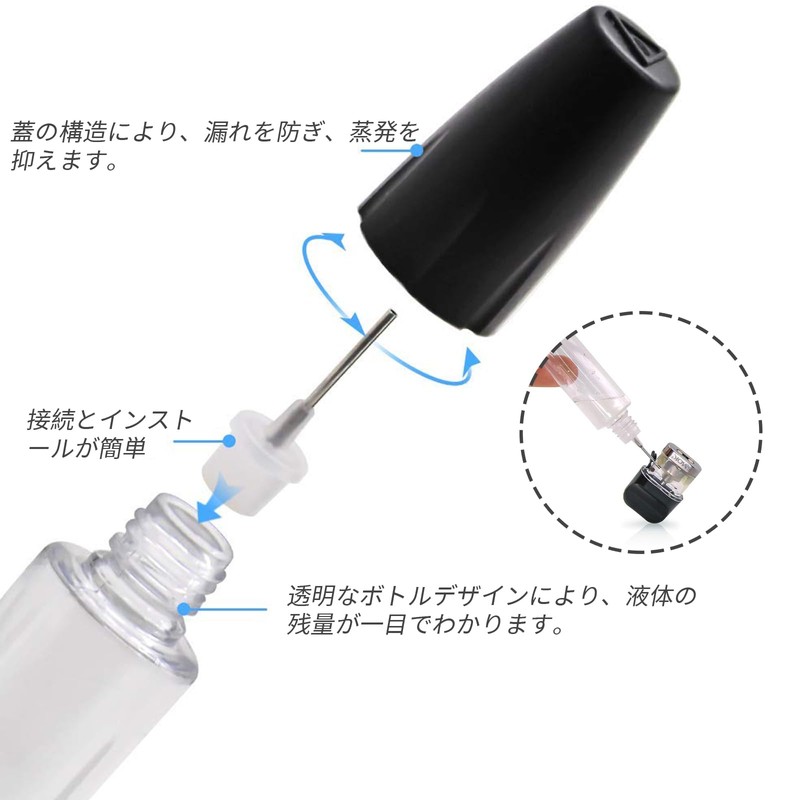 - Leak Proof Design: The high-seal cap construction prevents leaks and reduces evaporation. Suitable for long term liquid storage, especially for storing electronic cavariids, perfumes, lubricants and medical solutions