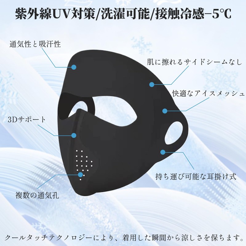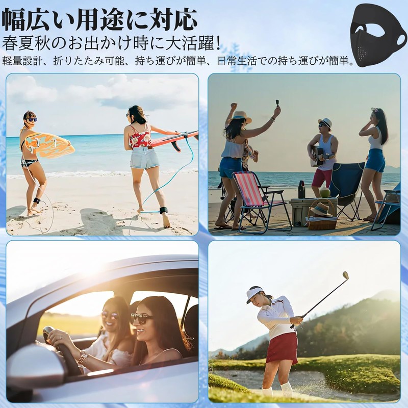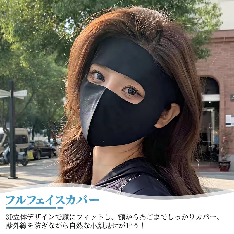 - 【フルフェイスカバー】3D立体デザインで顔にフィットし、額からあごまでしっかりカバー。紫外線を防ぎながら自然な小顔見せが叶う!