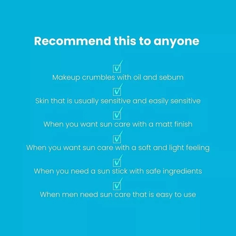 Su formato compacto lo hace ideal para llevar en la bolsa, mochila o bolsillo, y reaplicar en cualquier momento del día ☀️. Resistente al sudor y al agua, es apto para todo tipo de piel, incluso la más sensible.