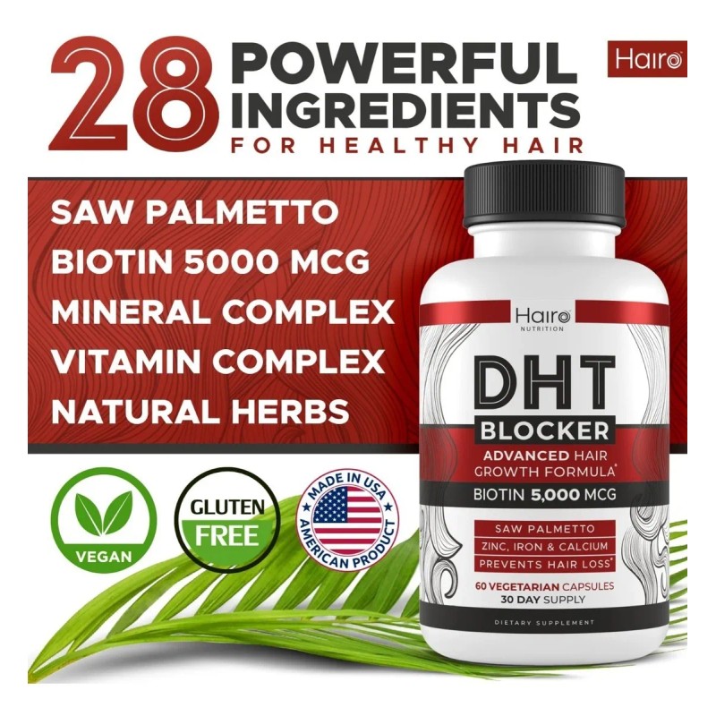 ✅ Este suplemento está diseñado para bloquear la conversión de testosterona en DHT, ayudando así a detener la caída, estimular el crecimiento de cabello nuevo y fortalecer el cuero cabelludo. Contiene extractos naturales como: