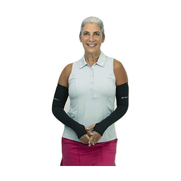 BloqUV 50+ UPF mens and womens sun sleeves provide sun protection from mid-bicep to hands when wearing short sleeves or non-UPF long sleeve shirts. Designed for athletic and routine activities with prolonged sun exposure. Perfect SPF arm covers for driving, tennis, golf, running, walking, boating, fishing, biking, hiking, horseback riding, gardening, driving, flying, construction and travel.