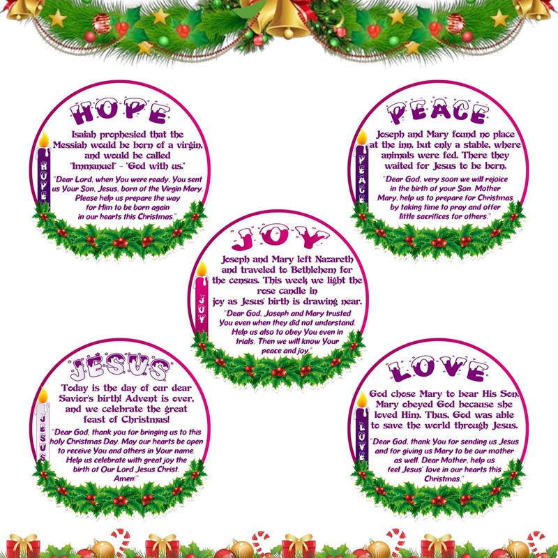 - Religious Symbol: our Christmas advent magnets cutouts for fridge feature bright colors with Light Hope Peace Jesus Joy Love and anticipation for the birth of Jesus Christ, decorated with advent wreath with red berries bows, advent candles, ideal for personal use or as gifts