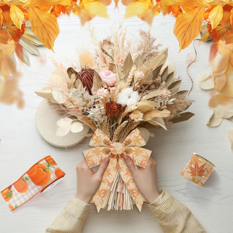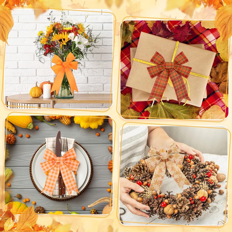 - Fall Harvest Themed: our fall wired ribbon set for wreaths feature fall orange color mainly, incorporating elements like maple leaves, buffalo plaids, autumn pumpkins, vibrant and eye-catching, exuding a lively fall autumn ambiance