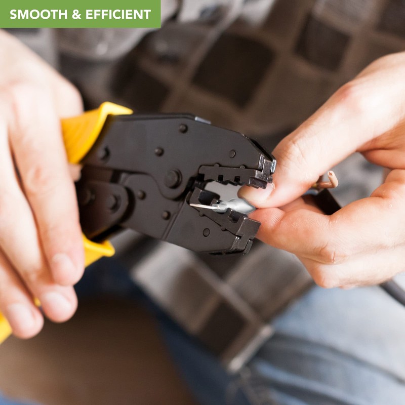 - UPGRADED ERGONOMIC DESIGN - Our innovative built-in ratchet design and comfort grip handle prevents painful hand fatigue and requires 50% less hand pressure. This crimp tool set is a must-have for electrical wiring work.