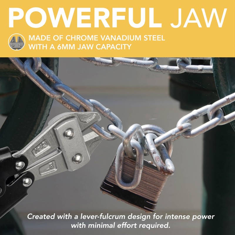 • POWERFUL - These bolt croppers are created with a lever-fulcrum design for intense power with minimal effort required. Customers love using this spring activated bolt and cable cutters for precise metal and wire cutting.