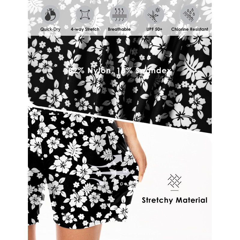 - High Quality Material: Swim shorts made of stretchy and comfortable swim fabric that provides UPF 50+ sun protection and chlorine resistant, fast-drying technology that helps dry the shorts quickly by absorbing water.