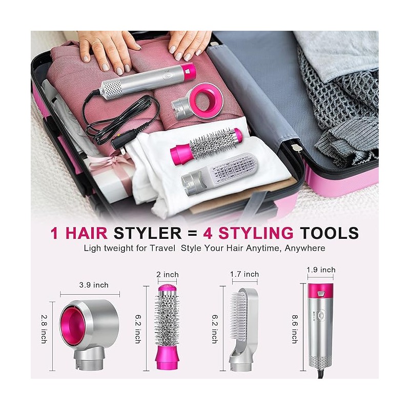 - 3-IN-1 VERSATILE STYLING SYSTEM Achieve salon-quality blowouts, voluminous curls, and pin-straight styles with three interchangeable heads: a concentrator nozzle for precise drying, a round brush for bouncy curls and volume, and a paddle brush for smooth, sleek results. Perfect for all hair types and lengths.