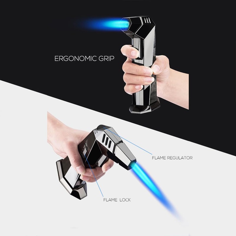 - ► Robust & Stylish: Featuring a sleek and rugged design, this torch lighter adds a touch of sophistication to your toolkit, while ensuring a secure grip with its ABS plastic body.