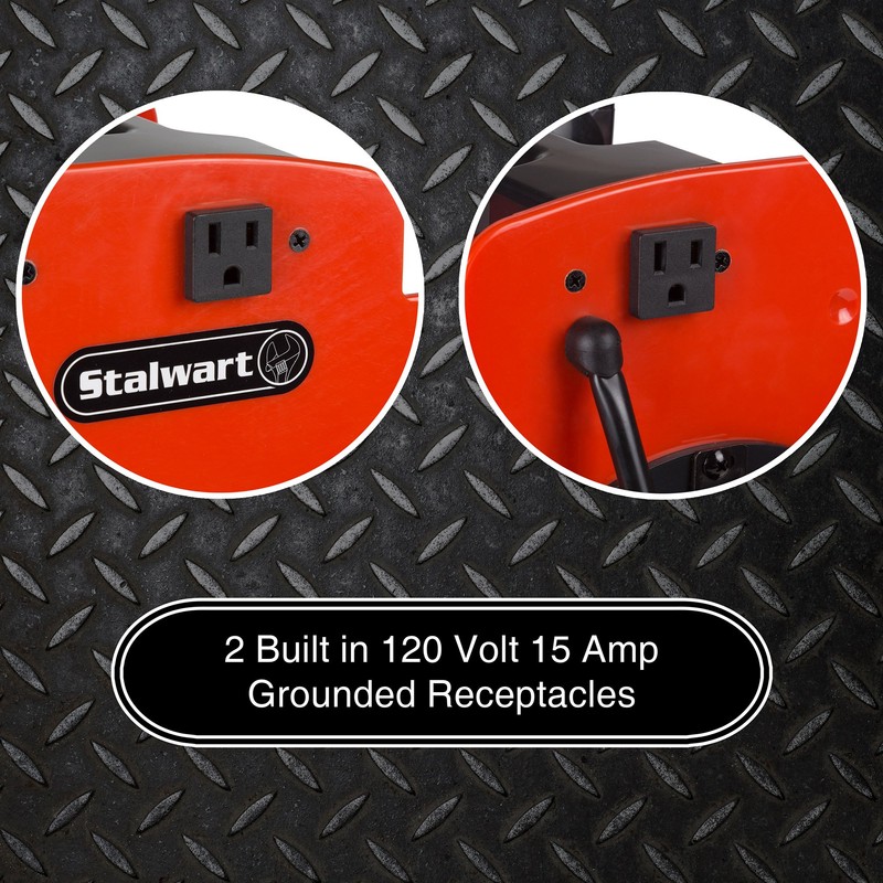 - PORTABLE POWER- The convenient carry handle on the Stalwart Industrial Fan Blower allows you to easily transport wherever needed. This compact blower includes two 15A built in ground sockets and also a long, convenient 8.5 foot / 14 gauge grounded power cord.