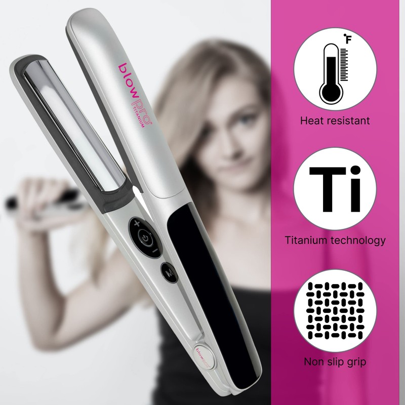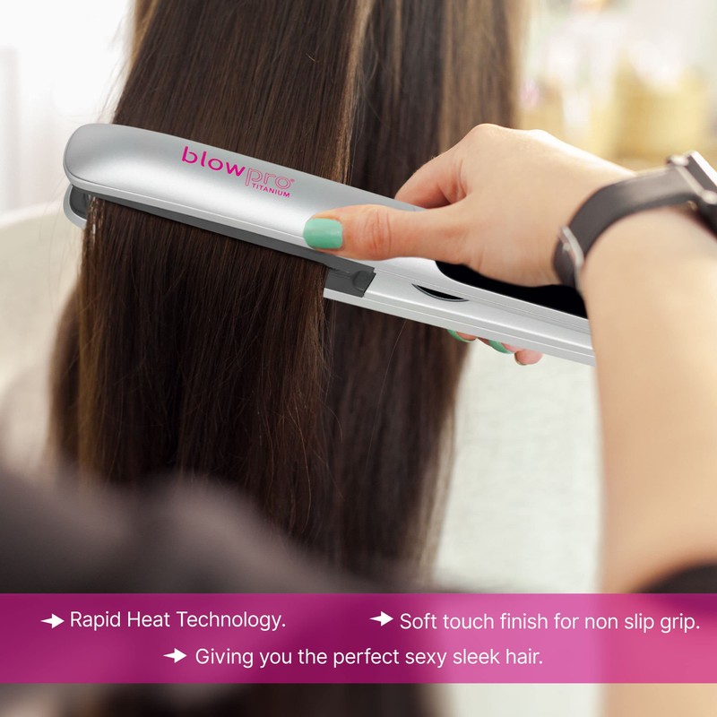 blowpro Titanium Professional Flat Iron - 1 Inch - Hair Straightener with Rapid Heat Technology - Heats Up to 425 Degrees in 60 Seconds