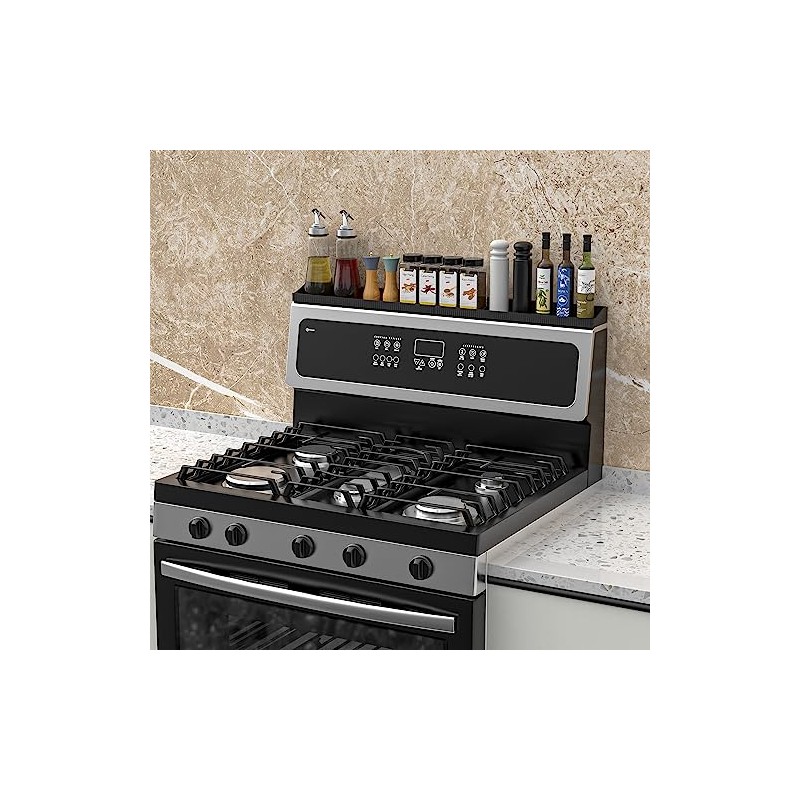 - 🧂Compact Sizing & Easy Installation: Featuring external dimensions of 30” x 3” x 1”, this rack takes up minimal space on the stovetop and can be easily installed without any tools or screws.
