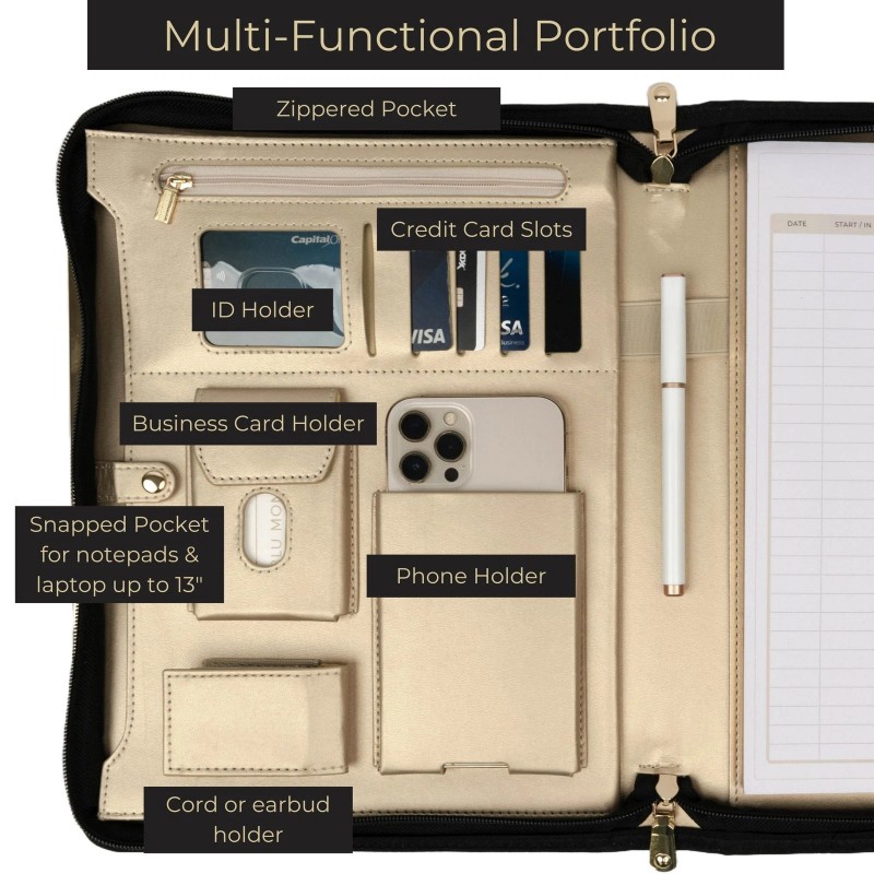 Dedicated Business Card & Credit Card Slots - Organize your contacts with ease in this professional folio.