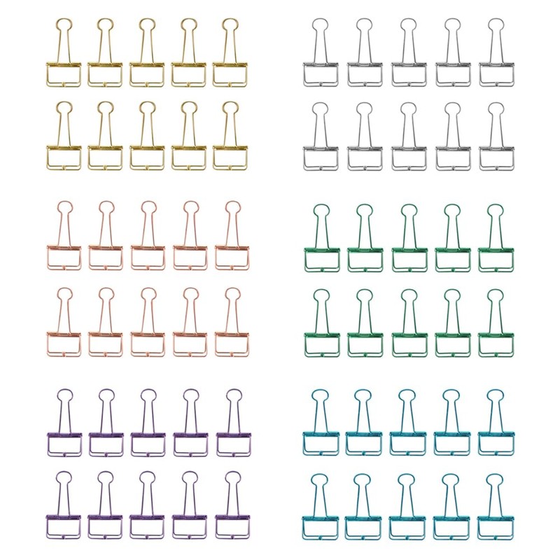 These clips have a simple, hollow design that does not obscure the text, and are available in two sizes (19mm and 32mm) and six colours, all electroplated to give a shiny, rust-proof finish.