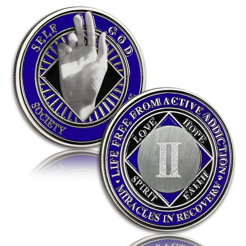 Blue and Silver 2 Year Sobriety Chip The Upward Hand Sobriety Coin NA Chips and Medallion AA NA Chip Narcotics Anonymous GiftRecovery Anniversary Token Sobriety Gifts for Men Women