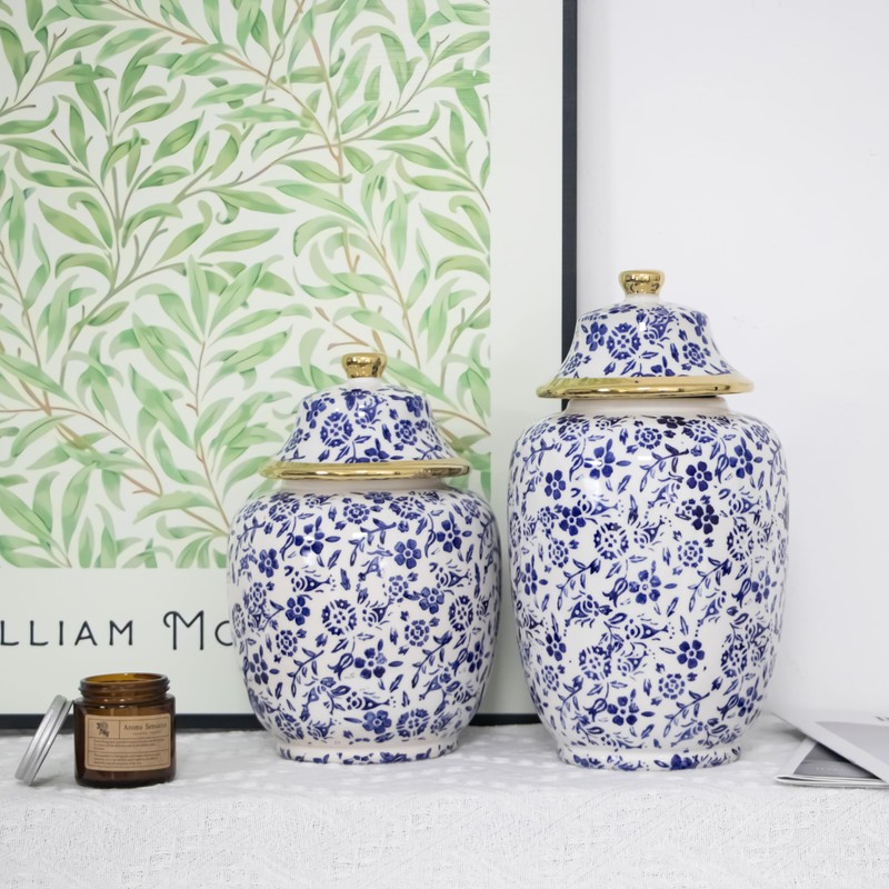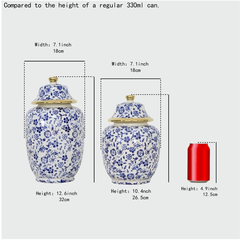 - Elegant Design: These modern ginger jars feature a classic blue and white porcelain design with a golden effect lid, perfect for enhancing your home decor.