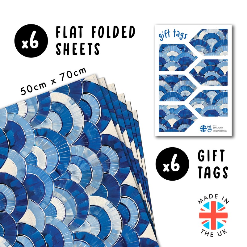 Blue and White Wrapping Paper - 6 Sheets of Wrapping Paper - Art Deco Sheets - Birthday Anniversary Christmas Wrapping Paper - Recyclable - by Central 23
