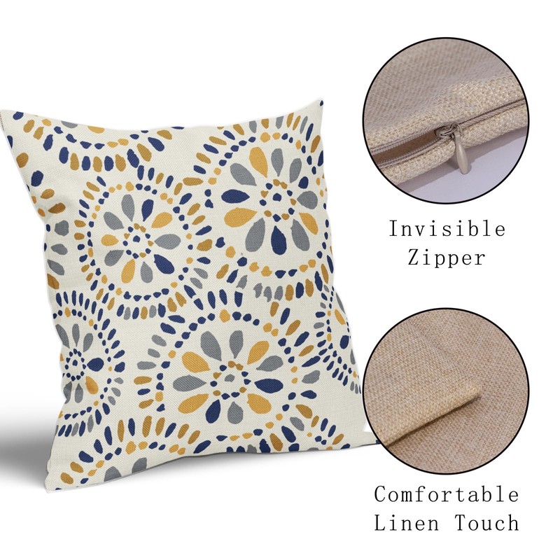 • Boho Decor Style: Blue yellow grey boho flower pattern will create an vintage style for your home. Yellow and blue pillow covers are very suitable for decorating the living room, bedroom, dorm, couch patio, porch swing, balcony, car, office
