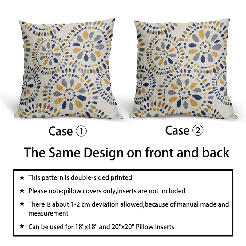 • Invisible Zipper: These yellow and blue throw pillow covers use both sides same design and high quality invisible zipper, beautiful and sturdy, pulls smooth, easy to clean and wear. Warm tips: pillows insert is not included