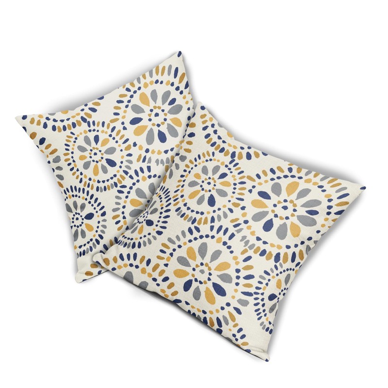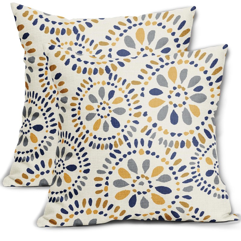 Blue and Yellow Throw Pillow Covers 18x18 Set of 2 Navy Yellow Grey Gray Boho Geometric Flower Pattern Print Decorative Pillowcases Farmhouse Outdoor Square Cushion Cases Decor for Sofa Bed Couch
