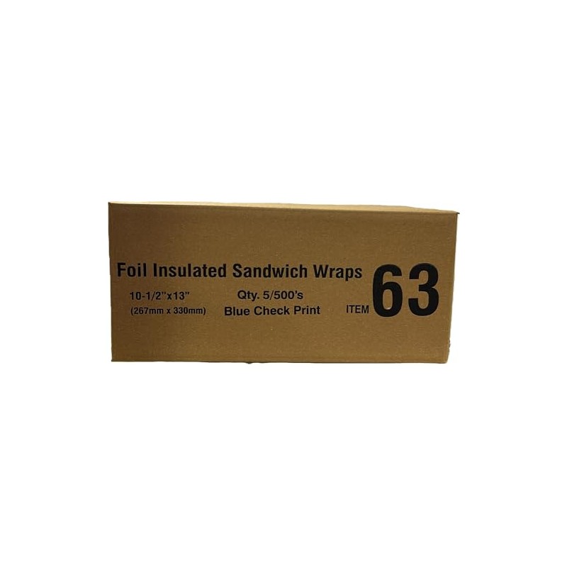 Blue Check Print, 2,500 pack Cushion Foil Sandwich Wrap 10.5" x 13"