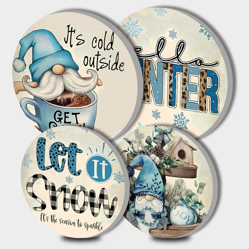 Blue Cold Winter Stove Burner Covers, Christmas Decor Gas Stove Burner Covers 8 &10 Inches Stove Top Covers Electric Stove 4 Pcs Metal Stove Cover Gas Stove Top Covers, Cooktop Decorative
