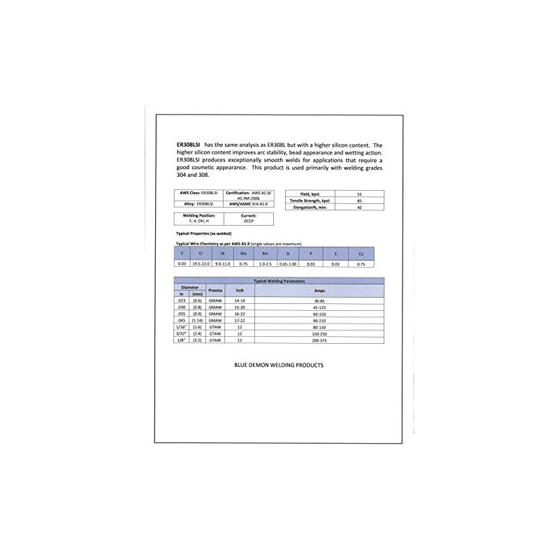 Blue Demon 308LSI X .023 X 10LB Spool stainless steel welding wire