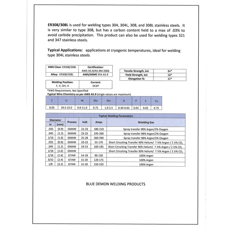 Blue Demon ER308L X .045 X 10LB Spool stainless steel welding wire