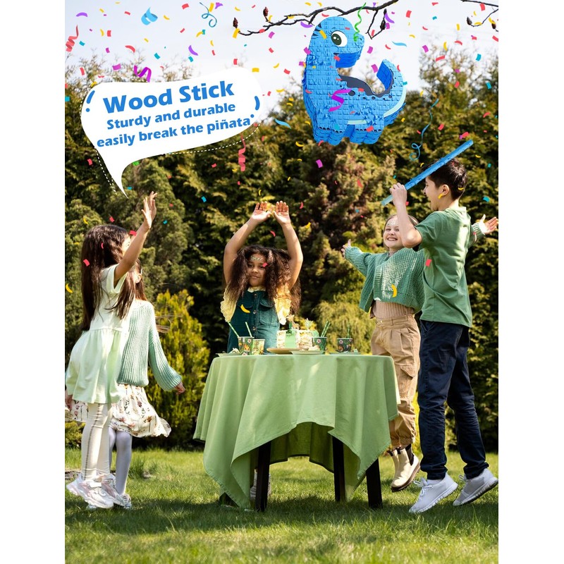 - UNIQUE DESIGN: This colorful dinosaur Piñatas (16"x12.6"x3.5") comes with12pcs paper glasses, a wood stick, confetti and blindfold, perfect for dinosaur Piñata for boys birthday party decorations.